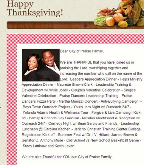 A Thanksgiving greeting from OUR Pastor Joel and First Lady Ylawnda Peebles November 26, 2011 by peopleofpraisemd 0 Share this: Click to share on X (Opens in new window) X Click to share on Facebook (Opens in new window) Facebook Like Loading... Related