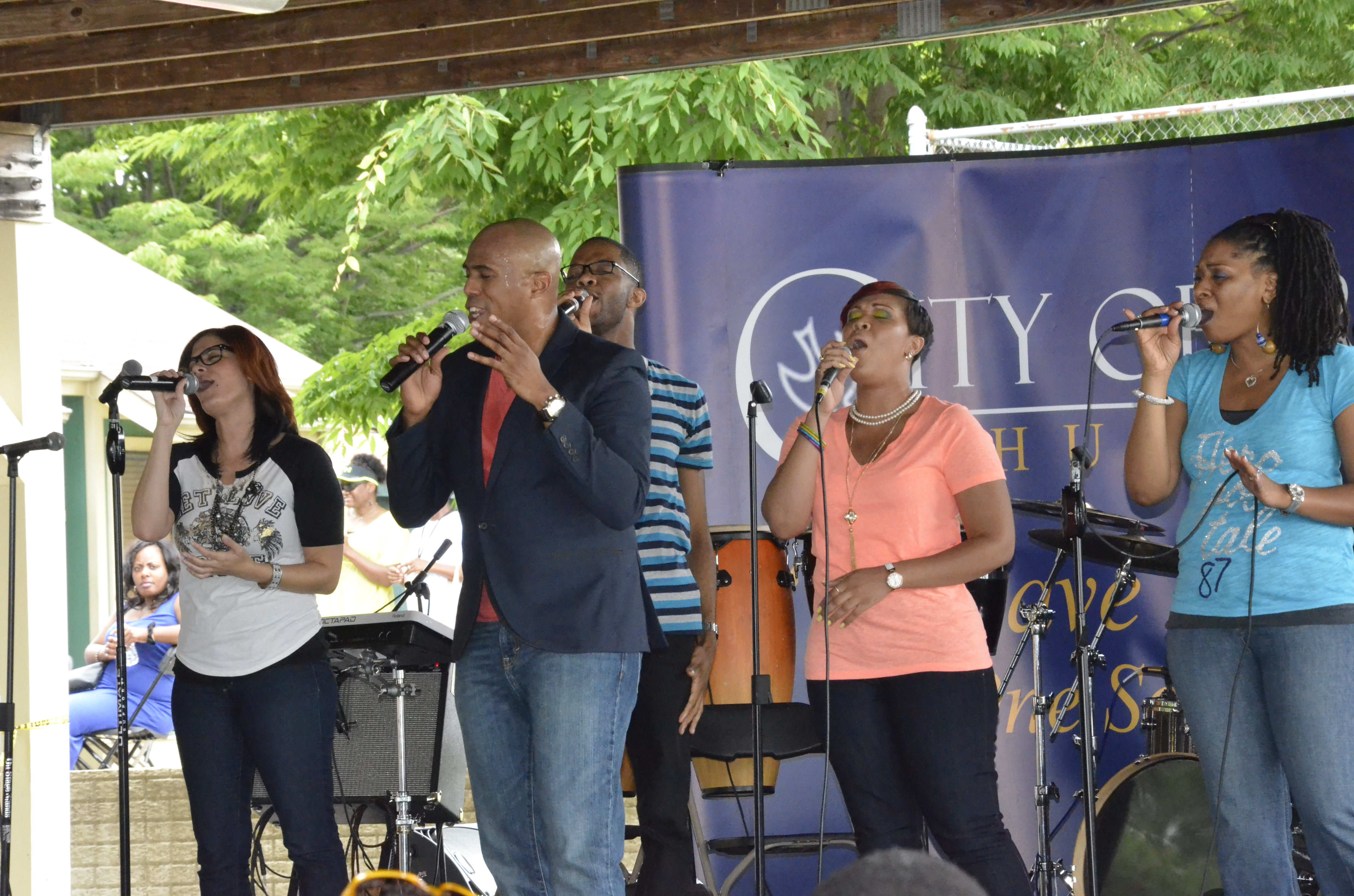 was held on Sunday June 9, 2013 at 10:00 a.m. This event was held outdoors at the Lake Arbor Golf Course in Mitchellvile, MD. This City of Praise event was well attended with a crowd in excess of 1500 members and visitors. The weather was great, God held back the rain and the heat and provided a glory cloud for us that day. Our surprise guests that day was “CoCo Brother” Cory Condrey & wife Joann Rosario Condrey. They have always been strong supporters of Pastor Joel and our ministry. Many members and their friends brought their tents, lawn chairs and grills and made a day of it in the park. The praise service was awesome, the after party was even better.