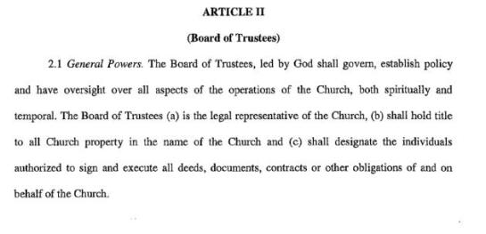 2. Are you able to post the by laws of the church? I am having a hard time understanding how people elected themselves to the board of trustees w/o notifying the congregation. Also, as memebers what are our rights? Can we collectively legally remove this board and creae a new one?