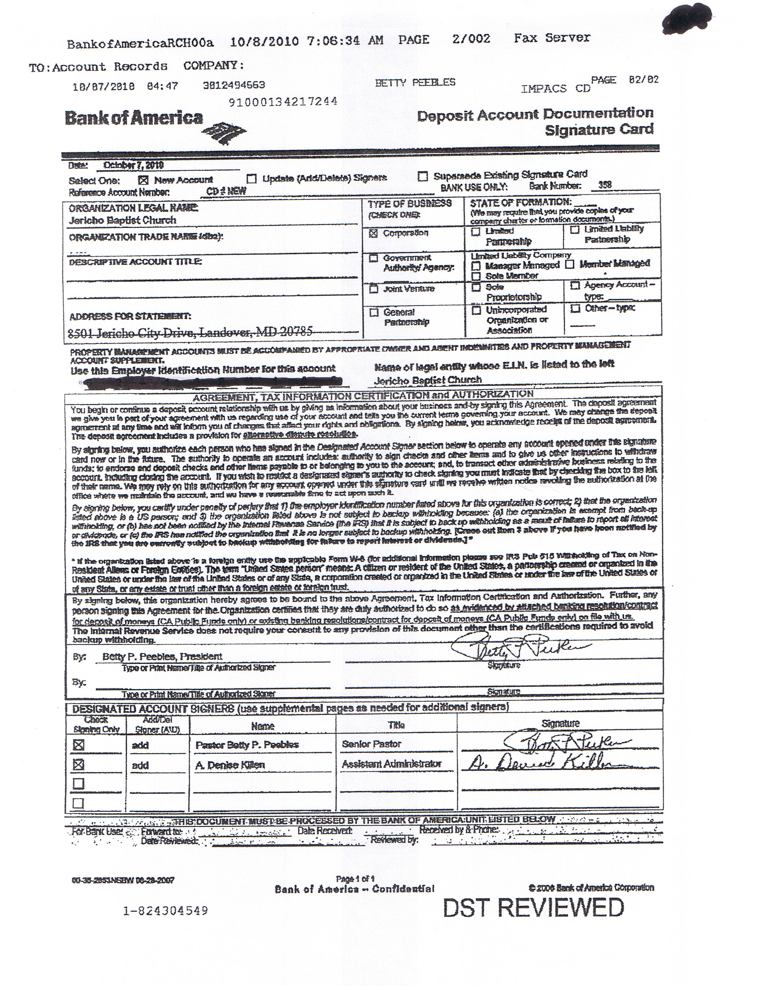 ***  Please take time and review the documents below:  Deposition Pg,  Bank Withdrawal Slip,  Bank Signature Card ***