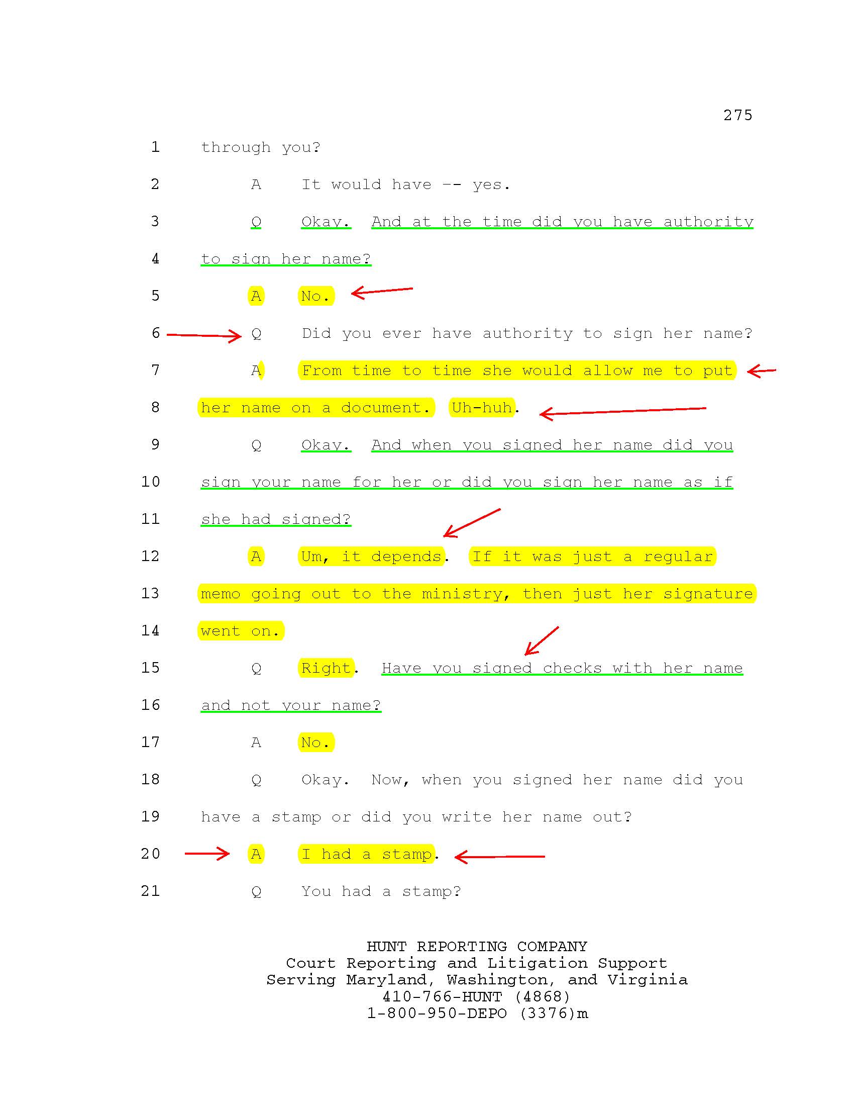 Head of the Jericho Rogue Board Denise Killen, admits to signing Apostle Peebles name on more documents
